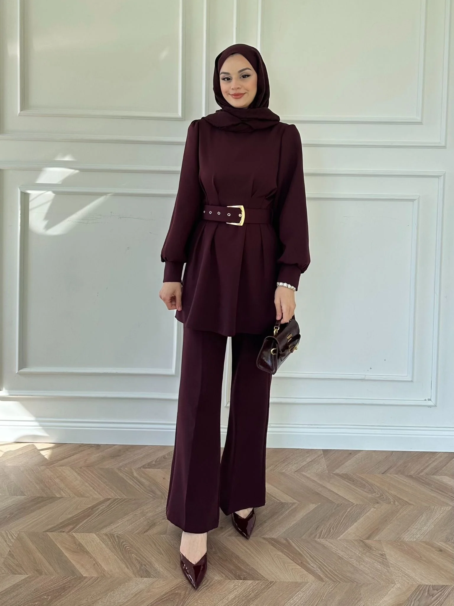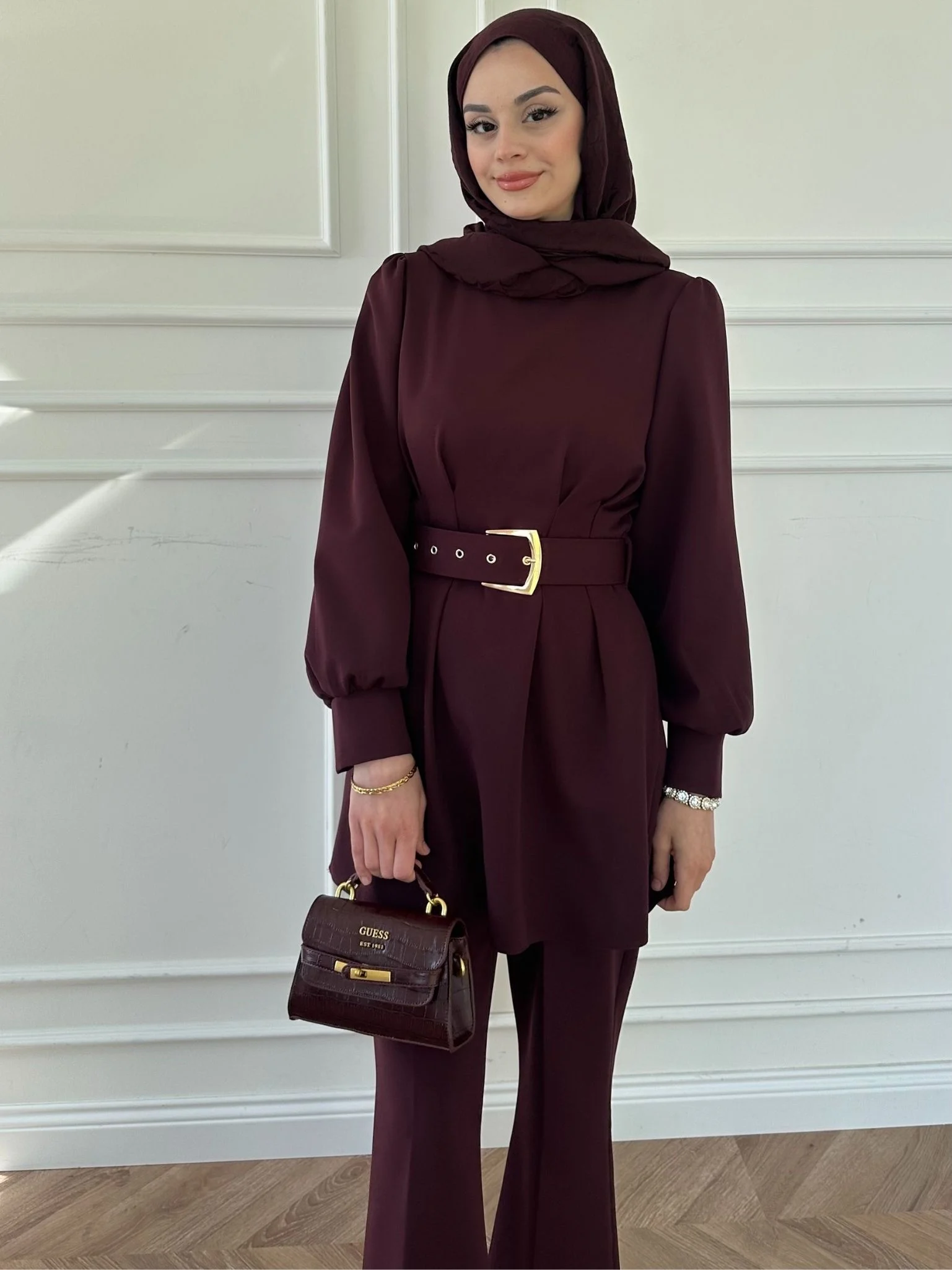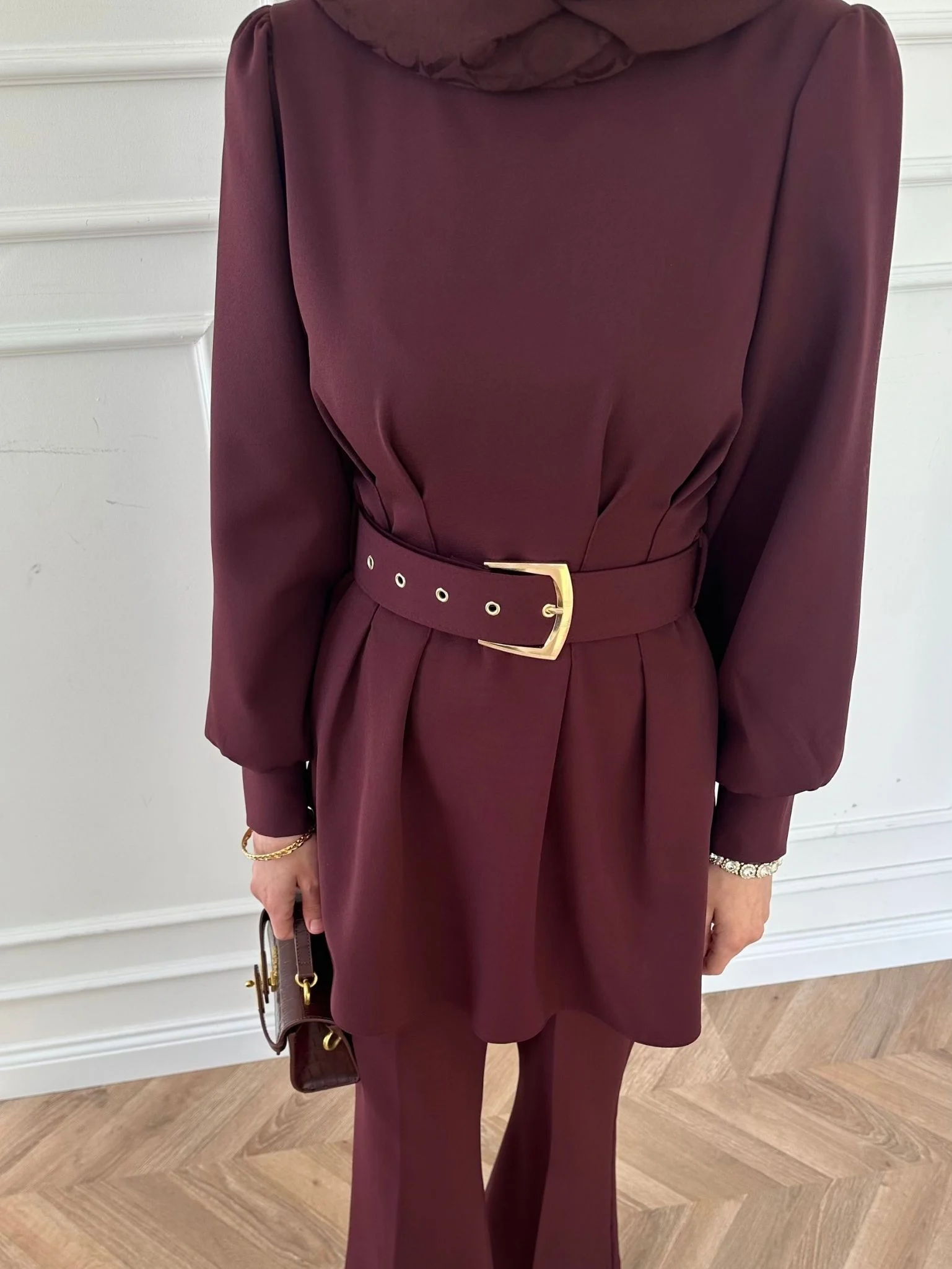 •Belden pileli, yakası hakim yakadır, arkadan bele kadar gizli fermuarlıdır.