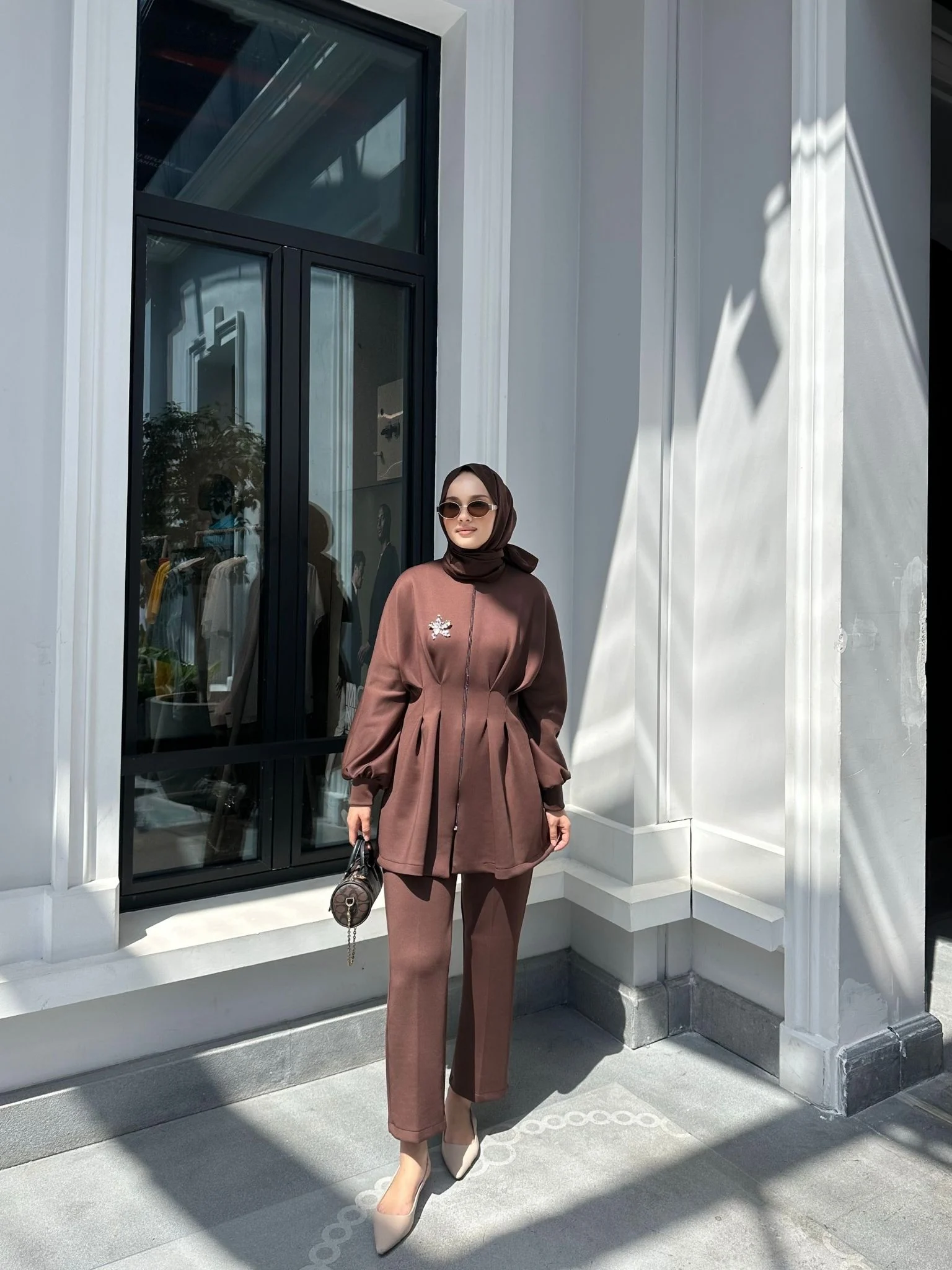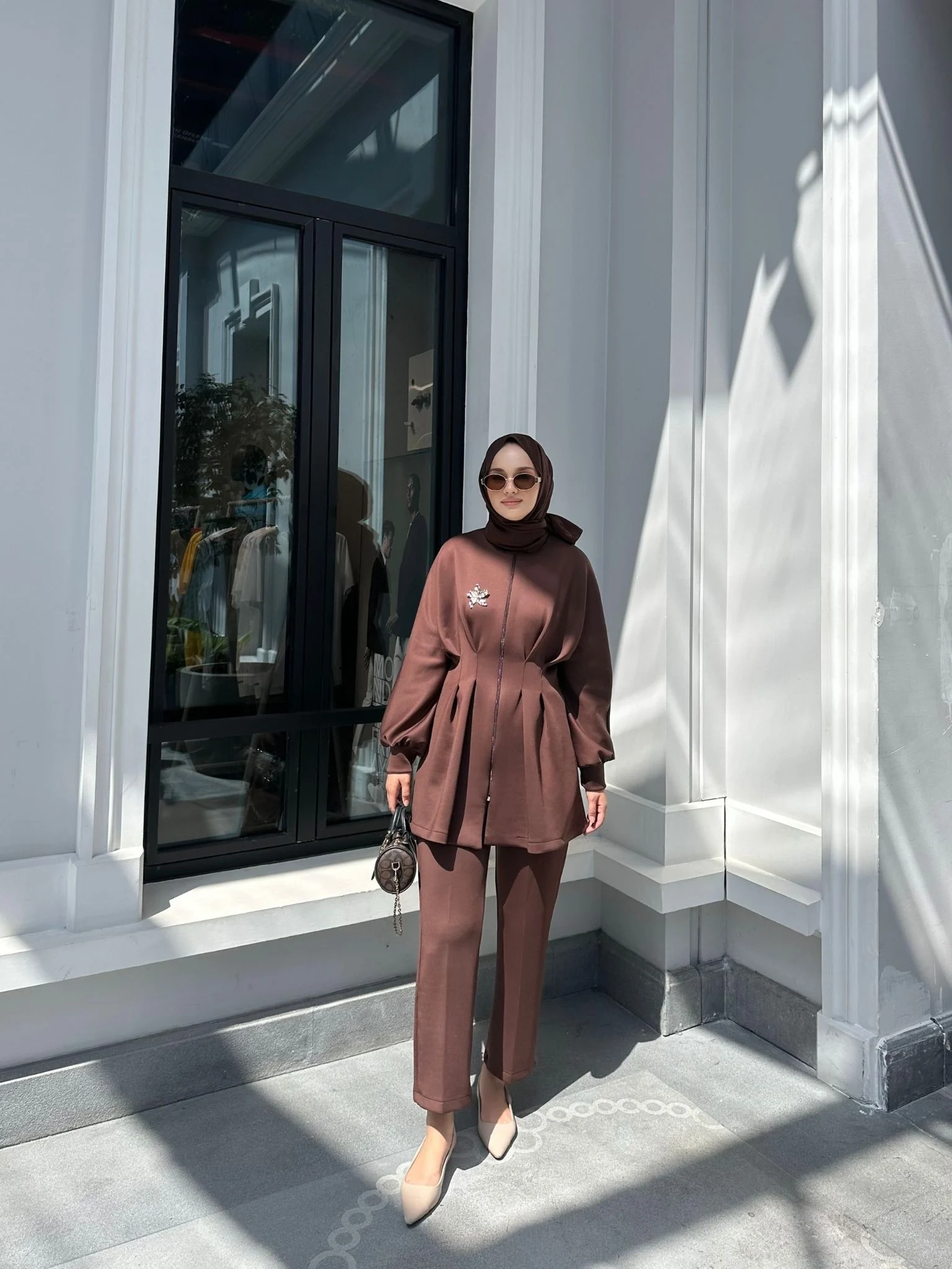 Beli pileli, fermuarlı tasarımıyla modern bir duruş sunan Lora Takım;