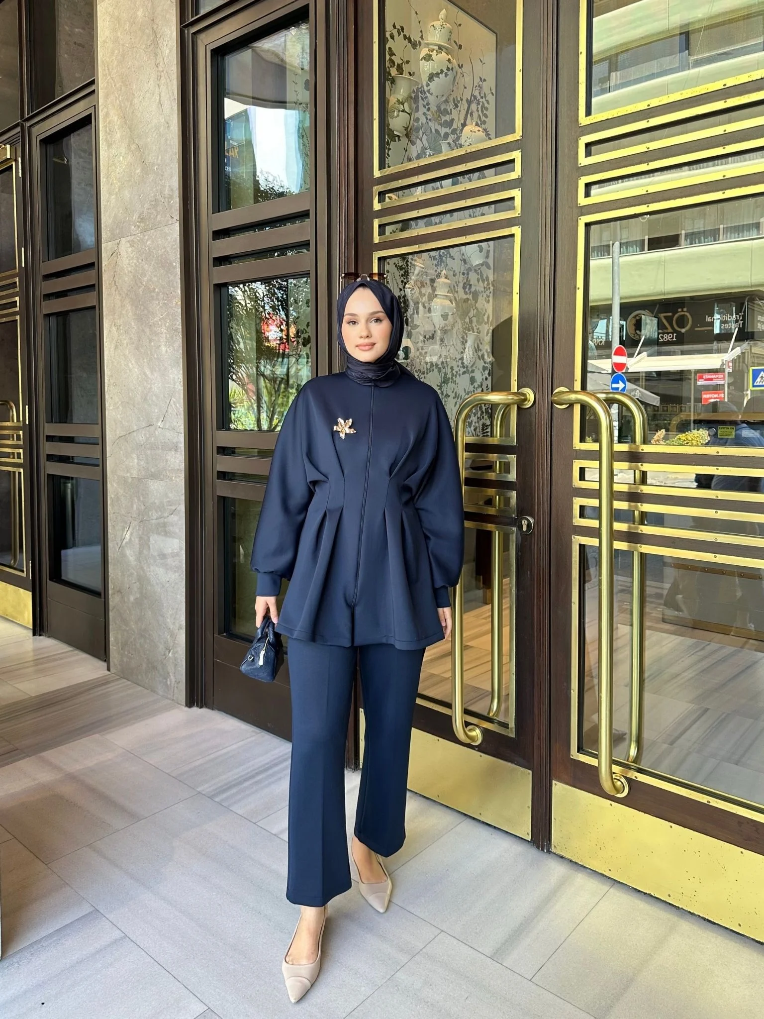 Beli pileli, fermuarlı tasarımıyla modern bir duruş sunan Lora Takım;