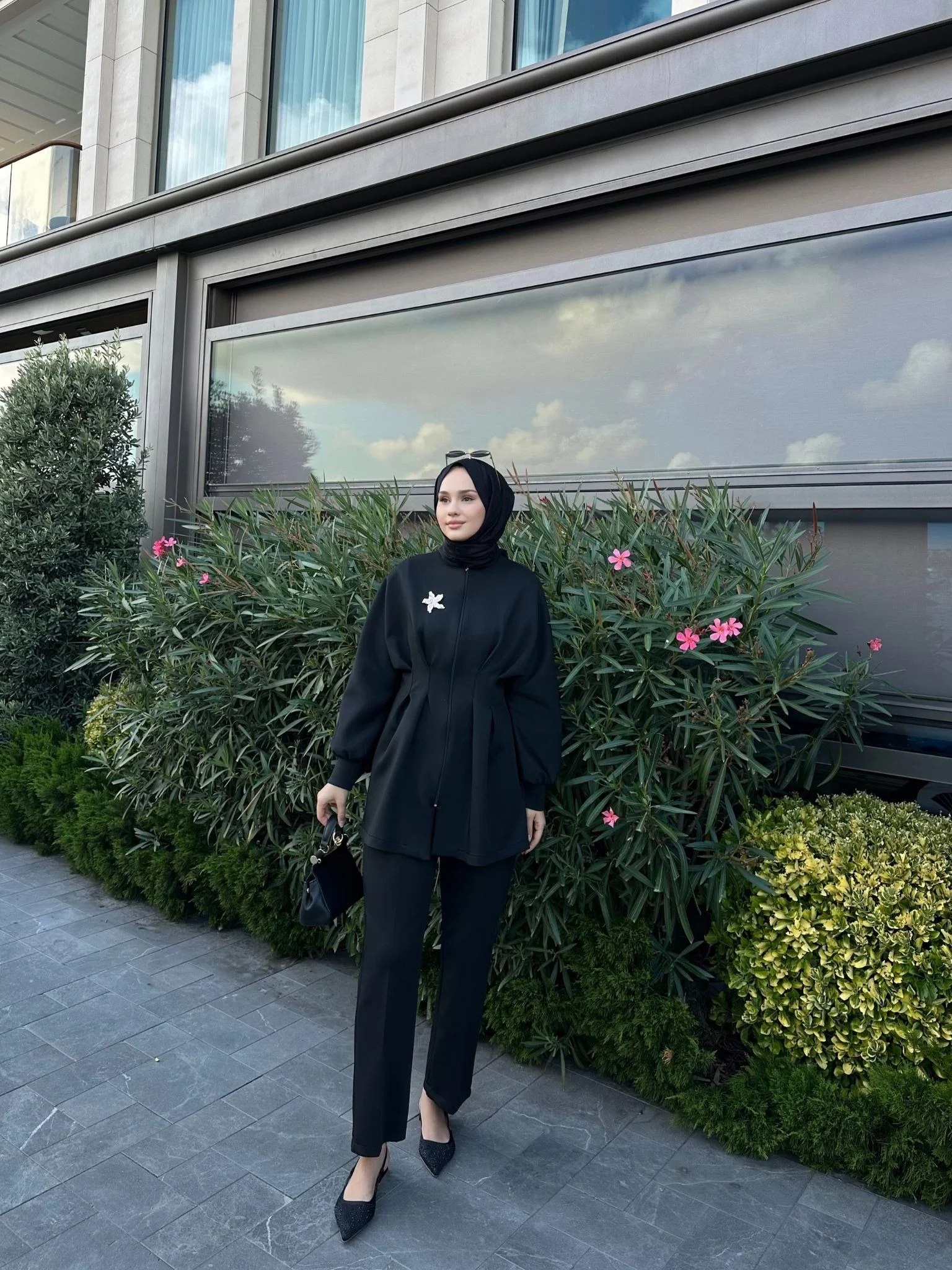 Beli pileli, fermuarlı tasarımıyla modern bir duruş sunan Lora Takım;